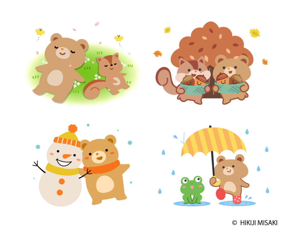 シンプルフラット 2023.01.24 女性のライフスタイルをイメージしたイラスト 北欧風な秋イメージの動物と植物のイラスト クマのキャラクターをモチーフにした季節のイメージイラスト(イラストACよりダウンロード出来ます) 色んな動物の顔アイコン(PIXTAより購入出来ます)